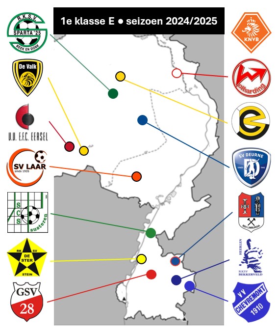 Eersel | rood-zwart | 4e in 1e klasse E | 10e seizoen 1e klasse | 3e plaats 1e klasse C (2011/2012 en 2022/2023) | 1-0-0 (3-1)